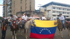 La cabalgata continuo su recorrido por la avenida Manapire hasta la plaza Bolívar donde los jinetes entonaron el himno Nacional “Gloria al Bravo Pueblo”.