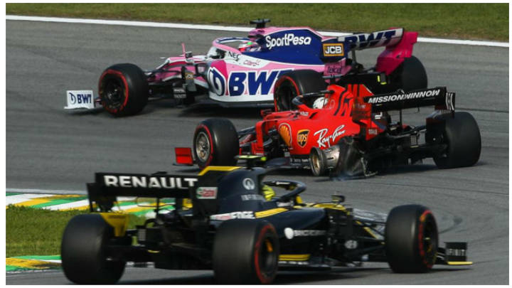 El accidente ocurre cuando los dos autos de la Ferrari, a pocas vueltas del final empiezan a luchar entre si. Leclerc con llantas más nuevas, ataca a Vettel en la primera curva. Es así como Leclerc pasa por delante. En la recta siguiente Vettel le coge a rebufo y supera a Leclerec. Así mismo, Leclerc hace un mal movimiento y provoca el accidente que los excluye de la carrera.