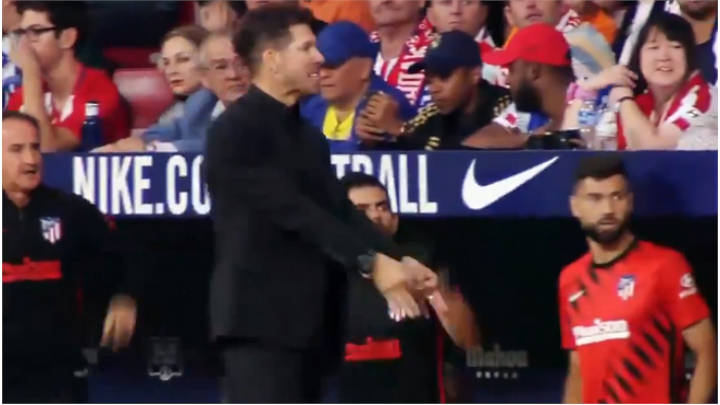 Después, camino al vestuario en el descanso, Sergio Ramos se dirige hasta donde está Simeone y se hacen gestos de enemistad. Mientras el argentino continúa con la protesta. Casemiro hace lo suyo por calmar la situación y entran más tranquilos a los vestuarios.