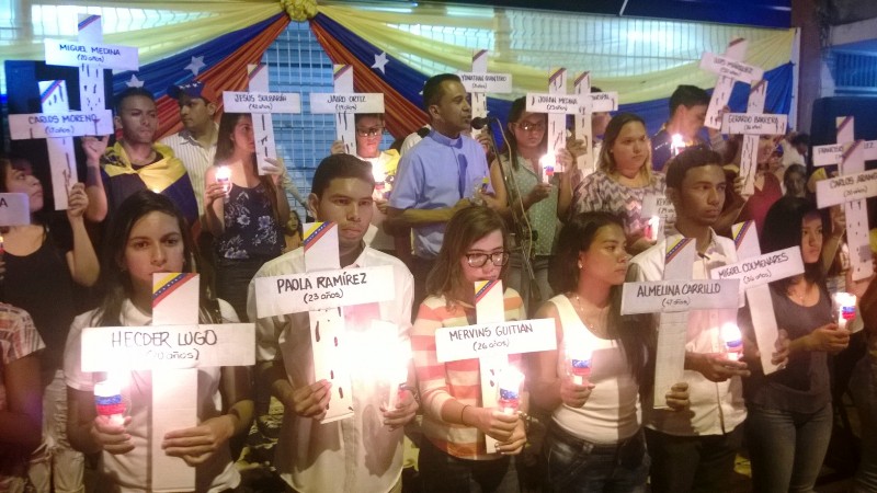 Valle de la Pascua.- Diversas organizaciones de la sociedad civil, representantes de las Iglesias Católica y Evangélica realizaron este miércoles  una vigilia por los caídos en las protestas contra el gobierno de Nicolás Maduro.